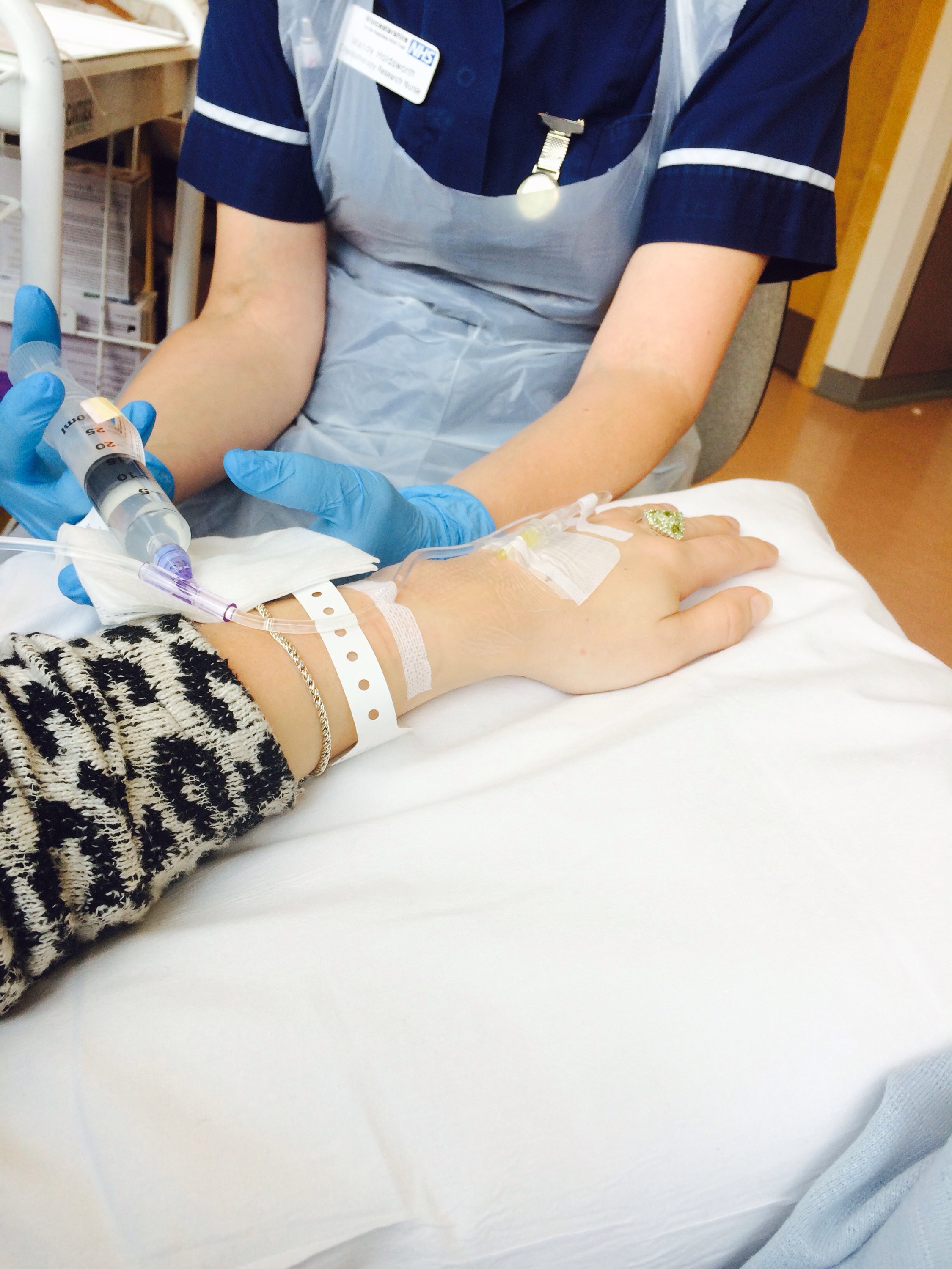 I’m back in hospital, no one panic! It’s planned. The chemo leak in my hand needs three treatments so I’m back and I have a bed, which is luxury compared to the normal chair. Although I say that but I quite like the recliner chairs!